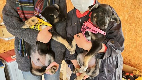 9月19日に保護した子犬兄妹マル♀️とシェーン♂️の飼い主さんを募集しています❗兄妹は町外の酪農家さんの敷地内に野良犬2匹が生んだ子犬14匹のうちの2匹で子犬たちはみな人に馴れていましたが保護した当初マルだけは人を怖がり抱っこしようとすると鳴いていま…