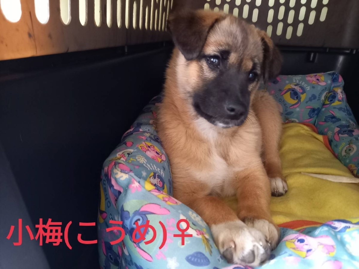 紅梅は、元々はめいとはなの住む牧場で野犬が産んだ仔犬で、3月13日に姉妹とみられるメスの仔犬会名モナカと一緒に捕獲檻で保護されました。